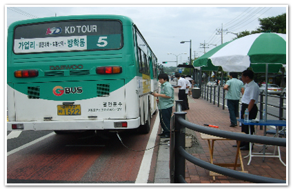 주요 여객터미널 및 회차지점에서 1,784대 집중 단속 지난 7월 22일부터 8월 19일까지 서울고속버스터미널 등 서울시내 6개 주요 여객터미널, 강변역, 도봉산역, 내곡동 진입로 등 총 10개소의 수도권 소재 시내버스의 주요 회차지점에 8개로 나뉜 배출가스 특별단속반이 출동했다. 그동안 서울로 진입하는 서울 시외지역 차량이 매연을 많이 뿜는다는 의견이 많아 수도권 소재의 노후 경유차량 시내버스에 대하여 배출가스 특별단속을 실시하였다. 이 기간 동안 점검한 차량은 모두 1,784대. 이 중 매연배출 기준을 초과한 차량 22대를 적발하였으며, 적발된 차량에 대하여는 해당 운수업체에 차량정비 개선명령과 310만 원의 과태료를 부과하였다. 현행 매연배출 기준으로 4% 이하 초과시 개선명령, 5% 이상 초과시 개선명령 및 과태료가 병행 부과되며, 과태료 금액은 배기량에 따라 10~50만 원까지 부과되고 있다.