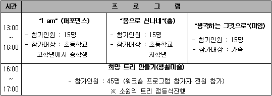 회색빛 콘크리트와 담쟁이 넝쿨이 주변의 한강과 한 폭의 그림 같은 조화를 이루고 있는 선유도 공원으로 예술여행을 떠나보자. 선유도공원에서는 ‘자연과 인간의 상생과 공존’이라는 주제로 예비조각가 42명의 작품을 선보이는 ‘선유도 환경예술제’가 29일부터 내년 2월 11일까지 열린다. 옛 정수장을 리모델링해 만들어진 선유도의 자연 풍광과 예비조각가들의 감수성이 어울려 초겨울 정취를 한껏 내뿜을 이번 전시회는 서울시립대 환경조각과 학생들이 신세대적인 톡톡 튀는 발상으로 환경과 조각을 접목시켜 제작한 작품들로 구성됐다. 김윤서의 ‘선유도의 꿈’, 동희선의 ‘한강에서 싱크로나이즈를’, 조가람의 ‘나비’등 42점의 작품들이 선보인다. ‘찾아가는 하우스 예술파티’ 체험행사도 열려 전시회 외에도 가족단위로 참여해 체험할 수 있는 프로그램인 ‘찾아가는 하우스 예술파티’도 열린다. 한국 실험예술정신(KOPAS)의 전문 아티스트들과 예술치료연구회 전문가들이 12월 10,16,17일 3회에 걸쳐 진행하는 이 프로그램은 마임, 퍼포먼스, 춤을 통해 표현하는 능력을 길러주는 체험행사이다. 행사 후에는 워크숍 참가자들과 함께 ‘희망트리 만들기’ 도 함께 진행한다. 찾아가는 하우스 예술파티의 참가신청은 오는 27일부터 12월 6일까지 한강페스티벌 홈페이지(hangangfest.seoul.go.kr)를 통해 마임, 퍼포먼스, 춤, 세 분야로 나누어 접수하면 된다. 교통은 합정역(지하철 2, 6호선) 8번 출구로 나와 SK주유소 앞 정류소에서 5714번 시내버스로 환승한 후 선유도공원 정문에서 하차하면 된다. 앞으로도 한강시민공원사업소에서는 시민들과 함께 공유하고 체험할 수 있는 다양한 프로그램 개발과 함께, 예술과 문화가 있는 공원조성을 위해 환경을 생각하는 작가들의 작품을 전시할 수 있는 야외조각공원을 설치하는 사업을 추진해 나갈 계획이다. 문의 한강페스티벌 홈페이지(hangangfest.seoul.go.kr)나 전화 537-1621.