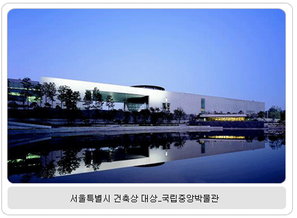 신축, 리모델링, 야간경관조명 부문별 선정 장방형의 단순한 평면으로 구성해 관람객의 흐름을 한눈에 알기 쉽고, 미래의 용산 대공원 개발에 중심적 역할을 할 수 있도록 배치된 것으로 호평받은 국립중앙박물관이 올해 ‘서울특별시 건축상’ 대상작으로 선정되었다. ‘서울특별시 건축상’은 매년 신축건축물, 리모델링 건축물, 야간경관조명 부문으로 나누어 우수한 건축물을 선정, 시상하는 것으로, 1979년 처음 제정되어 올해 24회가 되었다. 올해 서울특별시 건축상은 2004년 1월 1일부터 2005년 12월 31일까지 준공된 서울시 소재 건축물 총 34개 작품(신축 건축물 27점, 리모델링 건축물 7점)과 2006년 6월 이전 야간경관조명이 설치된 서울시 소재 시설물 총 8개 작품이 출품되어, 제출도면 및 현장심사를 거쳐 수상작품이 선정되었다.