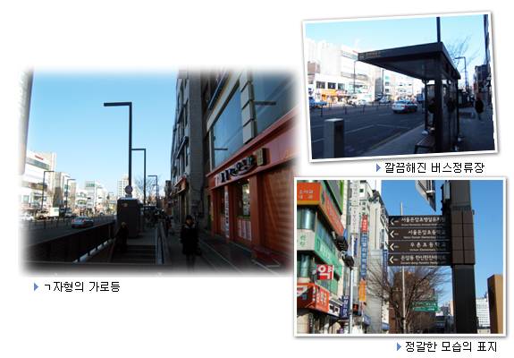 하지만 무심코 지나치기 쉬운 거리 곳곳을 조금만 살펴 보면 보석 같은 디자인의 숨결이 숨어 있음을 알 수 있다. 어린이를 동반한 여성들과 노약자를 위한 세심한 배려가 돋보인다. 유모차가 편안하게 다닐 수 있도록 보행로의 폭이 넓어졌고, 보도 전체가 화강석으로 이뤄져 걷기에 편안해졌다. 특히 도로 곳곳에 턱을 낮추고 평평하게 하여 차량이나 자전거, 오토바이 등의 진ㆍ출입을 쉽게 만들어준 점은 돋보인다. 눈이 많이 오는 겨울이나 장마철에 보행도로 곳곳에 턱의 높낮이가 다르면 넘어지기 쉬워 시민들의 안전에 큰 위협이 될 수 있다는 점을 배려한 것이다. 가로등과 조명시설도 은근한 볼거리를 제공한다. ㄱ자형의 검정색 가로등은 한글 ‘자음’의 우수성을 강조하고 도시미관을 돋보이기에 충분하도록 디자인되었다. 또한 간결한 부스 모양의 검정색 버스 정류장도 시민들의 휴게 장소로 적절하게 조성되어 있다. 거기에다 새롭게 마련된, 자연의 숨결을 품은 성북천과 봄과 여름이면 미니 콘서트가 열려 시민들에게 문화적 욕구를 충족시켜줄 한성대 분수광장은 쉼터 역할을 톡톡히 하고 있다.