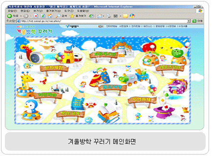 어린이들 위한 다양한 프로그램·정보 한눈에 방학을 맞은 자녀들에게 무슨 재미있는 추억거리를 안겨주어야 하나 고민하는 학부모들은 서울시 어린이 홈페이지의 『겨울방학 꾸러기』 코너를 참고하면 좋을 듯 하다. 서울시는 어린이와 청소년들이 겨울방학 동안 참가 할 수 있는 체험 학습 프로그램이나 겨울캠프 등의 정보를 한 곳에서 볼 수 있도록『겨울방학 꾸러기』코너 (http://kid.seoul.go.kr/vacation)를 개설해 운영하고 있다. 『겨울방학 꾸러기』는 문화체험, 자연학습, 학습/교육, 캠프/여행, 지역축제, 레포츠강습, 자유게시판 등 총 7개의 메뉴로 구성되어 있으며, 개별 홈페이지에 산재해 있던 정보를 한곳에 모아 겨울방학을 맞이한 어린이와 청소년에게 다양한 정보를 제공하고 있다. 지금까지는 방학과 관련된 정보를 얻기 위해 인터넷이나 신문, 잡지 등을 통해 일일이 개별 기관을 확인했어야 했는데, 이제 이러한 불편 없이 모든 정보를 한눈에 파악할 수 있게 되어 편리하다. 캠프·문화체험·자연학습 등 클릭하면 다 나와 관심있는 시민은 서울시 홈페이지(http://www.seoul.go.kr)에 들어가 좌측상단「어린이」 메뉴를 클릭하거나 직접 http://kid.seoul.go.kr/vacation(겨울방학 꾸러기)로 들어가면 된다. 서울시는 앞으로도 관련 프로그램에 대한 정보들을 지속적으로 수집하고 업데이트해, 자라나는 어린이/청소년들이 건강하고 보람찬 생활을 할 수 있도록 도와줄 예정이다. 아울러, 관련 프로그램이나 정보를 제공하고자 하는 기관은 이메일(admin@seoul.go.kr)이나 팩스(3707-9189), 전화(6361-3133)로 자료를 보내면 겨울방학 꾸러기 코너에 내용을 게시할 수 있다. |