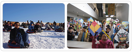 한겨울 가족레저, 눈썰매장은 열기로 가득 기나긴 겨울방학, 보충학습으로 바쁜 아이들에게 자연과 함께 신나게 놀 수 있는 기회를 만들어주자. 지금 한강에 가면 눈썰매장, 철새탐조여행, 철새조망대, 연날리기 등의 다양한 프로그램에 참여할 수 있다. 한겨울 가족레저인 눈썰매장. 올해도 한강시민공원 여의도, 뚝섬 눈썰매장은 아이들의 열기로 가득하다. 여의도 눈썰매장(☎ 785-1093)은 9천300평에 폭 20미터, 길이 110미터, 높이 11미터의 슬로프 규모로 넓은 공간에 튜브형 썰매로 재미를 만끽할 수 있다. 하루에 3천500명 정도가 이용 가능하다. 뚝섬 눈썰매장(☎ 452-5955)은 5천800평에 성인과 어린이 슬로프 두 개로 나뉘어져 있다. 성인슬로프는 폭 20미터, 길이 110미터, 높이 11미터이며, 어린이슬로프는 폭 10미터, 길이 30미터, 높이 1.2미터 규모로 3천명이 이용할 수가 있다. 눈썰매장 주변에는 매점과 휴게실도 갖추어져 있다. 썰매장 개장시간은 오전9시~오후5시, 입장료는 어린이 2천원, 청소년 3천원, 어른 4천원이며, 별도 튜브대여료는 없다.