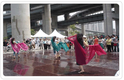 강변 따라 음악이 흐르는 “강변카페페스티벌” 꽉 짜인 일상에서 벗어나 자연 속에서 음악과 레포츠에 빠져볼 수 있는 시간이 있다. 5월 26일부터 27일까지 2일 동안 뚝섬지구에서 열리는 ‘강변카페 페스티벌’은 온ㆍ오프라인의 각 분야별 동호회 및 일반시민들이 어울리는 놀이와 문화의 축제 한마당이다. 전시, 공연, 강습, 체험 등 4개 테마로 나누어져 진행되는데 낮 시간에는 청소년을 위한 락, 힙합, 저녁시간에는 가족들을 위한 어린이댄스, 외국공연, 야간시간에는 중년층을 위한 통키타, 트로트 등의 공연이 열린다. 또, 온·오프라인 동호회 회원들이 전시용 부스를 설치하여 토피어리, 찰흙공예, 케이크, 온라인게임, 노래방체험 등 강좌도 준비한다. 아울러 한강에서 즐길 수 있는 인라인, 스케이트보드, 농구, 배드민턴 등 장비 전시와 함께 초보자를 위한 기초교실도 운영된다.