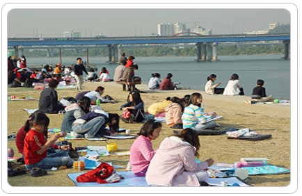 푸르른 세상이 그림속에 ‘한강 어린이 그림그리기 대회’ 한강변을 따라 가을 코스모스가 가득한 계절, 9월 13일 선유도공원에서는 올해 8회째 ‘한강 어린이 그림그리기 대회’가 열린다. 어린이들에게 변화하는 자연의 아름다움을 알리고 환경의 소중함을 일깨우기 위해 진행되는 프로그램으로, 매년 5백여명의 초등학생들이 참여하고 있다. 올해도 자연과 어우러진 한강, 미래의 한강, 한강에서 가족과 함께 즐겁게 보냈던 기억을 주제로 하얀 도화지 위에 아이들의 상상력을 마음껏 펼치게 된다. 9월경 한강사업본부 홈페이지(http://hangang.seoul.go.kr)를 방문하면 참여방법을 알 수 있다.