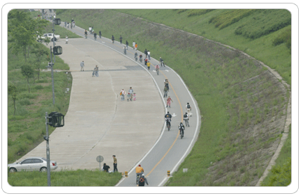 자전거 공기주입기 12곳 설치…시민 편의 도모 자전거나 인라인을 타면서 자연을 만끽할 수 있는 한강은 손쉬운 가족 나들이 코스로 각광을 받은 지 오래다. 특히 올해는 겨울날씨가 포근해 방학을 맞은 자녀들과 한강을 찾는 시민들이 부쩍 많아졌다. 우선 공기주입기가 설치된 곳을 살펴보면 광나루(만남의 광장 앞), 잠실(한강랜드 유람선 선착장 앞), 뚝섬(잠실대교 하부), 잠원(지구사무소 앞), 반포(원음방송 앞 체육공원), 이촌(옥수역 아래), 여의도(지구사무소 밑), 양화(안양천 자전거보관대), 망원(양화대교 밑 의자설치 주변), 난지(체육시설지 주변 자전거보관소), 강서(방화대교 밑) 등이다. 가시성을 높이기 위해 한강과 잘 어울리는 파란색을 써서 시민들이 잘 찾을 수 있도록 했다. 앞으로 한강사업본부는 자전거동호회 및 관계자들의 의견을 반영해 자전거도로 2km마다 공기주입기 28대를 추가 설치할 계획이며, 2008년까지 강변북로의 광진교에서 구리시계구간에 총연장 2,250m, 폭 5m로 홍수 등에 영향을 받지 않는 ‘물에 뜨는 자전거도로’를 조성할 계획이다. 철새들의 겨울여행 관찰하는 조망대 이와 함께 올해 한강은 계절별, 장소별 독특한 테마 프로그램이 운영되어 그 어느 때보다 많은 변화와 볼거리를 제공한다. 꽃과 레포츠, 음악이 어우러지는 다양한 한강변의 축제들을 소개한다. 현재 운영중인 철새 조망대는 호기심 많은 어린이들이 자연과 친해질 수 있는 좋은 기회이다. 오전 9시부터 5시까지 운영되며 망원경과 쌍안경을 이용해 철새를 관찰하면서 자원봉사자로부터 재미있는 해설도 들을 수 있다. 2월말까지 계속되며 신청 없이 수시로 이용할 수 있다.
