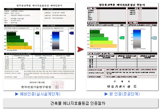 한국건설기술연구원에서 실시한 에너지효율 진단에서 최고수준으로 평가 서울시는 행정안전부에서 주관하고 한국건설기술연구원에서 실시한 공공청사 에너지효율 평가에서 서울시 신청사가 건축물 에너지효율 1등급 예비인증을 획득(7.6일)했다고 밝혔다. 건축물 에너지효율 1등급은 연간 에너지소요량이 300kWh/㎡ 미만에 해당하는 등급으로, 서울시 신청사는 274kWh/㎡ 로 공공청사 중 에너지효율 진단에서 최고 수준인 것으로 평가되었다. 건축물 에너지효율등급 인증제도는 에너지절약의 중요성 인식과 에너지절약형 건물을 확산시키기 위하여 정부산하 연구기관이 평가하여 인증하는 것으로 1등급부터 5등급으로 구분된다. 인증제는 총 2단계(예비인증, 본 인증)에 걸쳐 진행되며 예비인증 단계에서는 건물 설계시 설계도에 의한 에너지성능 평가를 하고 본 인증에서는 건물 입주시 최종설계도와 현장실사를 거쳐 에너지성능을 평가하게 된다.