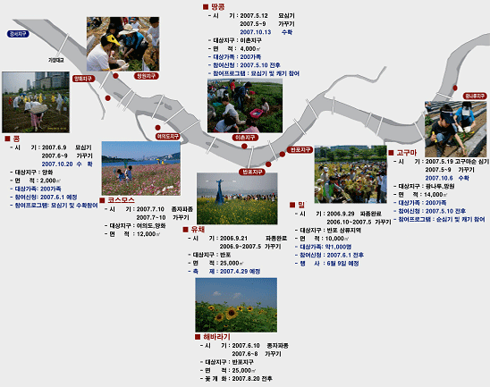남쪽으로부터 때 이른 봄소식이 전해지면서 한강 둔치도 봄맞이 준비로 분주하다. 서울시한강사업본부는 최근 내달부터 11월까지 한강시민공원 3500㎡규모의 자연학습장 및 도로, 녹지대 등에 20여종 55만본의 꽃을 식재, 시민들이 꽃내음 가득한 한강을 즐기게 할 계획이라고 밝혔다. 한강사업본부는 3월 잠실, 뚝섬, 잠원, 이촌, 여의도 등 5곳의 자연학습장에 봄꽃인 팬지, 데이지, 프리뮬라, 금잔화 등 17만 6천본을 심고, 5~6월에는 초여름 꽃인 메리골드, 페츄니아, 베고니아, 사루비아와 늦여름 꽃인 메리골드, 코리호스 등 일일초 31만 6천본을 심을 계획이다. 이어 9~10월에는 가을, 겨울 꽃인 중추꽃, 쿠션맘, 입국 등 5만8천본을 심어 계절에 따라 변화하는 한강의 모습을 연출할 방침이다. 더불어 가족단위로 함께 참여할 수 있는 농작물 가꾸기 체험 프로그램도 운영한다. 이 프로그램은 강서, 양화, 여의도, 반포지구 등 한강변에 116,000㎡ 규모의 전원단지를 조성하여 시민들이 유채, 밀, 해바라기, 땅콩, 고구마, 콩 등을 직접 심고 가꿔 수확하는 순으로 진행하게 된다. 한편 농작물 체험행사는 행사 실시 10일전에 한강사업본부 홈페이지(http://hangang.seoul.go.kr)를 통해 공고하며 참가 희망자는 예약프로그램에서 선착순 접수하면 된다. 4월 유채꽃 축제를 비롯 다양한 축제 펼쳐져 한강에서는 축제 또한 다양하게 운영된다. 4월 반포 서래섬에서는 ‘시민과 함께 하는 서래섬 유채꽃 축제’가 펼쳐진다. 지난 9월 서래섬의 25,000㎡규모에 파종한 유채가 꽃 망울을 터뜨리는 시기에 이루어질 축제에는 친환경 재활용품을 이용한 타악공연과 환경퍼포먼스, 재활용 타악기 놀이터, 어린이 난타, 재활용품 만들기 퍼포먼스 등이 진행될 예정이다. 또 6월에는 반포지구 상류에 심어진 밀밭에서 ‘추억의 밀서리 축제’가 마련되고 10월에는 광나루, 망원지구에서 ‘고구마 캐기’가 이촌지구에서는 ‘땅콩 캐기’ 등의 다양한 축제가 펼쳐질 예정이다. 이와 관련 서울시한강사업본부 관계자는 “시민들은 한강에서 펼쳐지는 축제를 통해 자연 학습과 더불어 농촌의 정취를 느끼는 한편 자연체험 프로그램에 참가하여 수확의 기쁨 또한 맛 볼 수 있을 것”이라고 밝혔다. (문의: 서울시한강사업본부 시설부 ☎ 02-3780-0870)