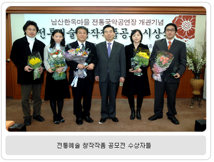 전통문화 전문 공연장 10월 개관 2007년 10월 개관하는 남산골 한옥마을 전통공연장의 개관작 공모전에 이원희씨의 ‘영영 사랑’이 최우수작으로 선정되었다. 세종문화회관은 공연장 개관기념으로 무대에 올릴 전통예술 창작작품 공모전을 열고, 최종 심사를 거쳐 언어극 분야에 최우수작과 우수작 각 1편씩, 비언어극 분야에 우수작 3편 등 총 5편을 선정했다. 2006년 10월 25일부터 2007년 1월 20일까지 열린 공모전에는 언어극 부문 44편과 비언어극 부문 19편이 접수되었다. 이 중 언어극 최우수작으로 선정된 ‘영영 사랑’(이원희 작)과 우수작 ‘옹화’(이유진 작)에는 각각 상금 3천만원과 1천5백만원이, 비언어극 우수작으로 선정된 ‘엄마와 함께하는 팔음놀이(이동영 작)’, ‘붓, six sense’(최민호 작), ‘노리, 봄여름가을겨울’(안경모 작)에는 각각 2백만원의 상금이 수여되었다. 최우수작으로 선정된 ‘영영 사랑’은 고전소설 ‘운영전’에서 극적 모티브를 얻은 작품으로, 안평대군, 운영, 김생, 무녀 등 등장인물을 형상화하여 춤, 노래, 연주, 소리(詩)가 어우러진 작품이다. 시상식은 2월 28일(수) 오전11시 세종문화회관 소회의실에서 개최되었으며, 당선된 작품은 전통공연장 개관기념 공연 및 향후 레파토리 공연으로 제작될 예정이다. 한편 2007년 10월말 건립되는 전통공연장은 전통예술을 창조적으로 계승·발전시키는 동시에 우리 문화의 우수성을 체험할 수 있는 전문공간으로 조성된다. 300여석 규모의 돌출무대 형태. 정악, 민속악, 판소리 등 전통국악 공연을 비롯하여 청소년 국악교실이나 전통문화강좌 등의 국악 강습이 연중 열리고, 시티투어와 연계한 전통문화 프로그램 또한 개발할 계획이다. ■ 문의 : 세종문화회관 홍보팀 ☎ 399-1191 |
