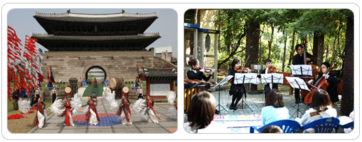 서울시립미술관에서는 15일까지 르네 마그리트전이 계속되고, 서울숲에서는 6월20일까지 서울숲 야외 환경조각전, 난지 미술창작스튜디오는 6일까지 난지환경조각전이 지속된다. 서울역사박물관은 15일까지 ‘흥선대원군과 운현궁사람들’ 특별전이 열리고, 27일(금)에는 박물관 로비에서 ‘음악이 흐르는 박물관의 밤’이 개최된다. 청계천문화관에서는 24~26일까지 ‘청계천 복원체험 놀이’가 지하1층 교육실에서 열리고, 29일 3층강당에서는 ‘문화가 흐르는 청계천의 밤-팝페라와 춤추는 바이올린’이 공연된다. 또한 매주 목요일 오후 7시에 열리는 ‘목요테마극장’도 무료로 영화를 감상할 수 있는 좋은 방법이다. 남산골한옥마을과 운현궁에 가면 ‘술시에 만나는 풍류방’, 일요예술무대 등을 만나볼 수 있고, (재)서울여성 서울여성플라자 1층 전시큐브에서는 ‘나성숙 옻칠·황칠 전’, 아트홀봄에서는 재즈피아니스트 임인건의 ‘4월의 정원’, 금요문화예술 페스티벌이 마련돼 있다. 열린극장 창동에도 무료로 감상할 수 있는 예술프로그램이 풍성하다. 5~7일 ‘함께해요 나눔예술’에는 서울시 오페라단의 ‘까발레리아 루스티카나’ 오페라 공연, 서울시 국악관현악단의 ‘추억으로의 회상 콘서트’ 국악 콘서트 등을 만나볼 수 있다. 벚꽃축제기간 중인 5~11일, 여의도 국회의사당에서는 국회전통예술축제가 열린다. 전통무용, 궁줄줄 6마당, 국회영상음악회, 전통문화강좌 등으로 채워진다. 이미 굉장한 호응을 얻고 있는 세종문화회관 ‘천원의 행복’ 콘서트는 23일 대극장에서 열리고, 서울시립교향악단도 6일과 29일, 두 차례 각각 LG아트센터, 예술의전당 콘서트홀에서 개최된다. 자치구별 문화행사도 다양 이밖에 자치구별로도 볼만한 행사들이 즐비하다. 종로구에서는 판토마임이나 연극을 보여주는 ‘대학로 마일제(마지막 일요일) 행사가 마로니에공원 야외무대에서 열리고, 중구는 27일 ‘충무공 이순신 탄생 462주년 기념축제’가 충무아트홀, 청계천, 석호정 등에서 개최된다. 용산문화원 대강당에서는 3~5일 가족뮤지컬 ‘여우의 꼬리상점’이 공연되고, 삼각지 화가거리 일대에서는 ‘화랑거리 축제’가 열린다. 중랑구에서는 봉화산 정상 도당에서 19일 ‘봉화산 도당제’가 열리고, 중랑구립 정보도서관에서는 20일, 서울시립교향악단 실내악 초청공연이 있다. 강남구민회관의 목요상설무대에서는 스위트 소로우(4인조), 보잉스의 댄스 스트링 등을 만날 수 있고, 송파구에서는 8일(일), 석촌호수 벚꽃대축제가 열린다. ■ 문의 ☎ 2171-2564 (서울시 문화국 문화과) |