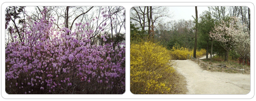 봄이 깊어가는 요즘 온 누리가 온통 꽃세상이 되었다. 서울도 예외가 아니어서 공원이나 아파트 화단은 물론 길거리까지 꽃으로 뒤덮인 모습이다. 거리마다 내놓은 화분에는 곱고 예쁜 작은 꽃들이 방긋 피어나고 벚나무 가로수가 요즘 한창 꽃망울을 터뜨렸기 때문이다. 그런 중 서울의 산마을 공원에 피어난 꽃들이 아주 특별하다. 강북구 산마을 가운데에 있는 오동공원은 요즘 한창 피어난 꽃들로 장관을 이루고 있다. 한쪽 산자락이 온통 진달래꽃으로 뒤덮인 모습은 우리나라 어느 진달래 명소와도 비교할 수 없을 만큼 아름다운 모습이다. 마침 선생님을 따라 나온 유치원 어린이들이 “야아! 꽃동산이다!” 하고 외치며 진달래꽃이 흐드러진 가운데 산책로를 달리는 모습이 꽃과 어우러져 더욱 예쁜 풍경을 연출한다. 귀여운 아이들이 꽃밭 가운데 함께 어우러지니 꽃들과 어린이들이 모두 한 덩어리로 귀엽고 예쁜 꽃이 되었기 때문이다.
