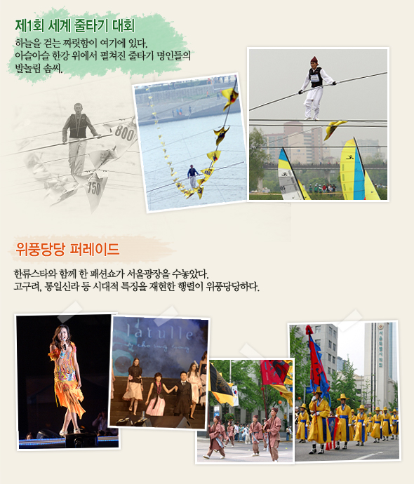한강 여의도ㆍ노들섬ㆍ뚝섬ㆍ난지지구, 경희궁, 운현궁, 서울광장 등 서울 곳곳에서 펼쳐진 하이서울 페스티벌은 한강을 생활 가까이 느끼고, 고궁의 아름다움을 새삼 깨닫는 흥겨운 축제 한마당이었다.