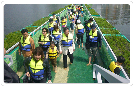 노들섬과 이촌지구 사이 300미터 철제다리…축제기간 중 17만여명 참여 하이서울페스티벌 기간 중 한강을 건너는 짜릿함을 안겨줬던'한강 미라클 수중다리'. 원래 축제가 끝나는 5월 6일까지 운영할 계획이었으나 시민들의 성원에 힘입어 철거가 연기됐다. 축제기간 동안 다리를 건넌 이들은 약 17만명. 그러나 많은 이들이 수중다리를 건너기 위해 장시간 대기하거나 체험을 포기하는 등 불편을 겪기도 했다. 이에 서울시는 운영기간을 늘려 많은 이들이 한강을 체험할 수 있도록 하겠다고 전했다. ‘한강 미라클 수중다리’체험은 노들섬과 이촌지구 사이에 300미터 길이의 철제 다리를 맨발로 걷는 것으로, 다리 위에는 30cm 높이의 한강물이 흘러 실제 물 위를 걷는 듯한 기분을 느끼게 한다. 또 다리 가장자리에는 수생식물을 배치해 놓아 한강을 그냥 걷기 아쉬운 이들에게 작은 볼거리와 여유까지 전해준다. 철거 시기는 장마가 도래하는 6월 초순쯤이 될 것으로 보인다. 다리를 건널 수 있는 시간은 오전 10시부터 18시까지. 체험자는 안전을 위해 구명조끼를 착용하고 다리를 건너게 된다. 발끝으로 한강의 감촉을 느껴보고 싶다면, 이번이야말로 절호의 기회. 가족·연인과 함께 물 위를 건너는 즐거움을 만끽해보자. ■ 문의 ☎ 2171-2572 (서울시 문화국 문화과) |