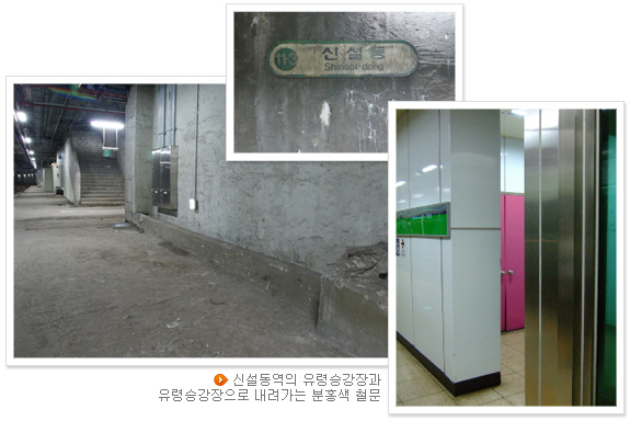 한편 신설동역의 이색적인 곳이라면, 일명 ‘유령승강장’을 들 수 있다. 1호선과 2호선의 연결선로가 출고선은 위층, 입고선은 아래층으로 연결되면서 2호선 신설동역에 지하 3층 승강장이 생겨났는데 정작 2호선은 위쪽 승강장만 이용하므로 아래쪽 승강장이 이용되지 않고 있는 것이다.
