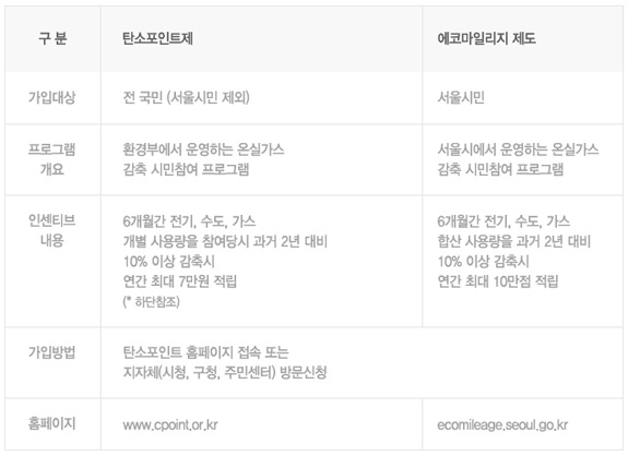 ■ 탄소포인트제와 에코마일리지 제도 비교