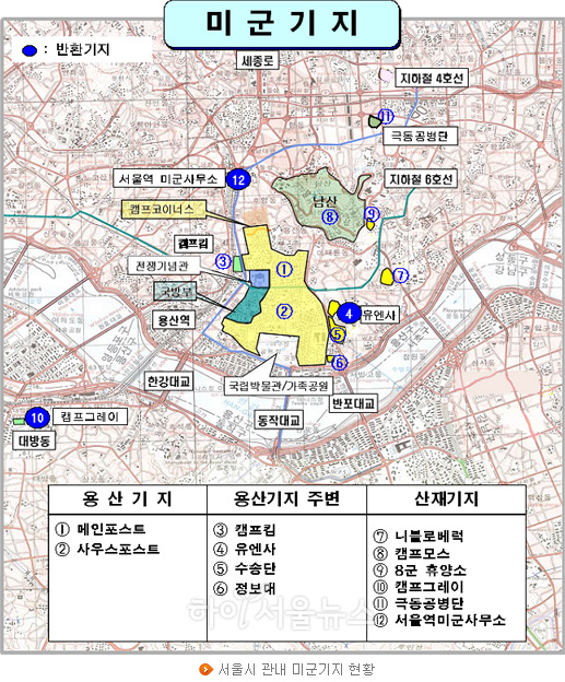 [서울시 하이서울뉴스] 서울시는 경북 칠곡군 ‘캠프캐럴’ 고엽제 매립 의혹과 관련, 시민들의 불안 해소를 위해 서울시 관내 미군기지 주변의 지하수 수질검사를 실시했다. 그 결과 고엽제의 부산물인 다이옥신 등 화학물질 성분이 검출되지 않았다.