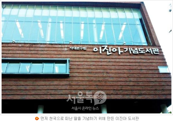 [서울톡톡] 서울시 서대문구 독립 공원길에 위치한 구립 이진아 도서관은 부모의 애틋한 마음이 담겨있는 도서관이다. 2003년 불의의 사고로 딸을 잃은 한 가족이 평소 책을 좋아했던 딸을 기리기 위해 도서관의 건립 기금을 기부하였고, 딸의 생일날 개관하였다. 개인적인 슬픔을 사회를 위한 나눔으로 승화한 아름다운 뜻이 담겨있는 것이다.