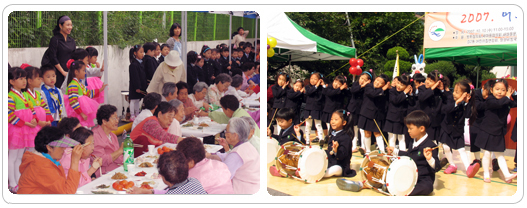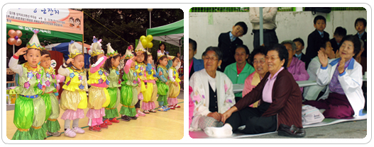 “화창한 가을 날씨에 어르신들께서 많이 나오셨습니다. 부모님을 섬긴다는 생각으로 오늘 하루 즐겁고 행복하게 모실 생각입니다” 경로잔치가 흥겹게 진행되고 있던 삼익파크아파트 주차장에서 음식이 부족하지 않은지 이곳저곳을 둘러보던 임동호 길2동 동장의 얼굴에 웃음꽃이 활짝 피었다. 길동 삼익파크아파트 주차장을 온통 비우고 잔치마당이 열렸는데, 300여명의 노인 분들과 지역주민 그리고 신동우 강동구청장 등이 참석한 이날 경로잔치에는 동내 어린이집 5곳, 5개 팀이 펼친 재롱으로 어르신들을 즐겁게 만들었다. 또, 초청가수의 노래와 장기자랑으로 어르신들은 시간가는 모르고 흥겨워하는 모습이었다.