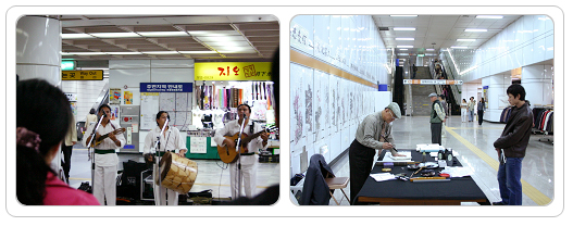 10.22~31, 지하철 118개 역사에서 행사 펼쳐져 승객과 지역주민이 무대의 주인공이고 관객이 되는 축제가 이달 31일까지 펼쳐진다. 서울도시철도공사는 지역주민과 함께 하는 열린 축제의 장인 ‘시민과 함께 하는 5678 서울도시철도 가을문화축제’를 지하철 5~8호선 118개 역사에서 개최하고 있다. 올해로 12회를 맞는 이번 축제에는 전시회, 공연, 음악회, 무료체험 행사 등 총 304회의 문화행사가 마련된다. 또 미술작품 및 수공예품, 사진작품 등의 전시회가 서대문역 외 88곳의 역사에서 이루어지고 무료 건강 검진 및 상담, 가훈 써 주기 행사 등도 만날 수 있다. 이외에 바자회, 차 나누기, 해동검도 경연대회, 태권도 및 무술시범 등 다양한 이벤트가 펼쳐져 지하철 5~8호선을 이용하는 승객들이 10월말까지 지하철에서 문화와 예술을 함께 만나는 기회를 접할 수 있다.