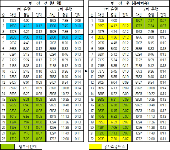 운행시간 최대 30분 단축, 운행횟수 최고 4회까지 늘어