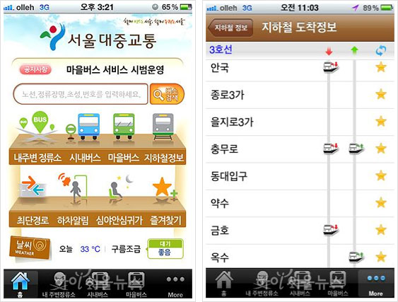 앱은 27일(월)부터 안드로이드마켓과 앱스토어에서 '서울 대중교통'을 검색하면 무료로 다운로드 받을 수 있다.