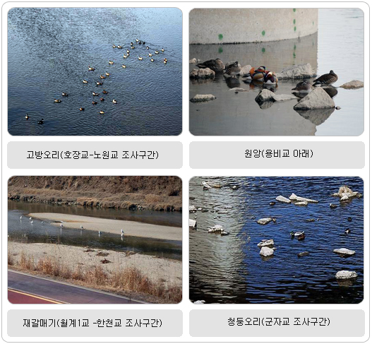 특히 강서습지생태공원 주변에는 천연기념물인 황조롱이와 개리, 환경부 지정 멸종 위기 야생 동·식물 Ⅰ급인 가창오리와 말똥가리 등 보기 드문 조류들이 발견됐다. 중랑천 용비교 아래에선 부부금슬로 유명한 천연기념물인 원앙(27 개체수)이 포착됐고, 한강밤섬 생태경관 보전지역에는 민물가마우지 무리가 발견됐다. 이와 함께 암사동·고덕동 생태경관 보전지역에서는 천연기념물인 흰꼬리수리와 환경부 지정 멸종위기 야생 동·식물 Ⅰ급인 말똥가리가 조사되었다. 월드컵공원에서도 천연기념물인 황조롱이와 환경부 지정 멸종 위기 야생 동·식물 Ⅰ급인 말똥가리가, 탄천에서는 천연기념물인 매와 환경부 지정 멸종 위기 야생 동·식물Ⅰ급과 Ⅱ급인 말똥가리와 큰기러기가 조사되었다. 암사동·고덕동·밤섬 등의 조사는 야생 동·식물 보호활동을 해온 생태경관 시민모임과 서울환경연합 소속 조류 전문 모임인 하호가 소속 회원들이 함께 했다. 시 관계자는 “앞으로 조사 대상지를 확대해 조류 보호와 서식지 관리에 많은 노력을 기울이겠다”고 밝혔다. 문의 : 푸른도시국 자연생태과 ☎ 02-2115-7551