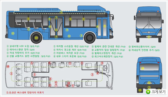 [서울톡톡] 서울 시내버스가 더욱 안전하고 이용이 편리해진다. 서울시는 안전도 향상 및 교통약자 이용 장치 보완, 차량 내부 편의사항 개선 등이 포함된 '2013년 서울 시내버스 차량개선 추진계획'을 발표했다.