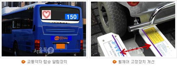 먼저 바퀴 폭이 10㎝ 이하인 수동휠체어와 일부 전동휠체어만 이용이 가능했던 '휠체어 고정 장치'를 바퀴 폭이 10㎝가 넘는 전동휠체어까지 거치가 가능하도록 전면 개조한다.