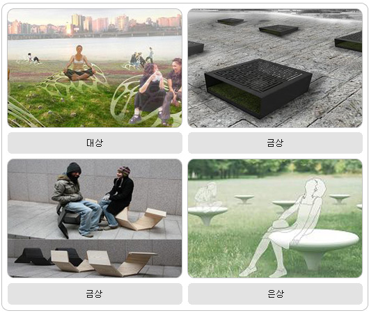 수변 공간ㆍ공원ㆍ광장ㆍ가로변 등에 설치할 벤치ㆍ의자 디자인 설계…참가작 917점 서울시가 ‘맑고 매력 있는 세계도시 서울’을 구현하고, 서울의 도시브랜드 가치를 높이기 위해 ‘서울디자인올림픽 2008’ 주제인 ‘Design is Air’를 공모주제로 실시한 『벤치ㆍ의자 디자인 공모』전 수상작을 발표했다. 수변 공간, 공원, 광장, 가로변 등에 설치할 벤치ㆍ의자 디자인을 설계하는 이번 공모전에는 학생 765, 일반인 144, 외국인 8명 등이 참여하여 총 917점의 작품이 접수됐다. 접수된 작품은 실현 가능성, 장소의 적합성 등을 종합적으로 고려하여 심사했으며, 심사 결과 한강 둔치를 대상으로 디자인 한 지정우(EEK Architects. 미국 건축사무소)씨의 ‘벤치, 한강 풍경에서 숨을 쉬다’ 가 대상 수상작으로 결정됐다. 신현중 심사위원장(서울대학교 교수)은 “작년에 비해 응모작 수가 대폭 늘어났을 뿐 아니라 다양한 디자인과 아이디어가 뛰어난 작품들이 많아 전체적으로 공모전의 수준이 높아졌다”고 평가했다. 이와 함께 금상은 한승훈(상명대학교 산업디자인학과), 이다임(경북 하동군)씨의 ‘한국의 아름다움’과 정재범, 조늘해(홍익대학교 목조형 가구학과)씨의 ‘screw it’이 차지했다. 이밖에도 은상 10점, 동상 30점, 입선 30점이 수상작으로 선정됐다. 수상자에게는 서울특별시장상과 함께 대상 5백만원, 금상 각 3백만원, 은상 각 1백만원, 동상 각 30만원, 입선 각 10만원의 상금이 수여되며, 시상식은 6월 2일 시청 본관 태평홀에서 개최될 계획이다.