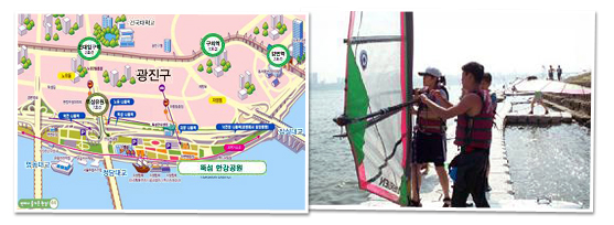 8월 9일부터 10일까지 뚝섬공원 일대에서 한여름 찜통더위를 몰아낼 수 있는 한강사랑레포츠페스티벌이 8월 9일부터 10일까지 한강 뚝섬공원 일대에서 열린다. 서울시 한강사업본부는 ‘2008 한강사랑레포츠페스티벌’과 ‘한강뚝섬공원 청소년윈드서핑교육’ 행사를 ‘하이서울페스티벌 여름축제’와 연계하여 개최한다. ‘살아 숨쉬는 한강과 함께 하는 축제’를 타이틀로 한강에서 수상레포츠 체험 기회를 제공할 예정이며, 수상 레포츠 체험, 수영복ㆍ스포츠웨어 패션쇼, 축하공연 등 모든 행사를 무료로 진행한다. 축제 참가자들은 서울시수상스키협ㆍ서울윈드서핑연합회의 도움으로 수상 레포츠를 전문적으로 배울 수 있으며, 웨이크보드, 윈드서핑퍼레이드 등 전문가들의 화려한 쇼와 시범도 관람할 수 있다. 래프팅, 카약, 윈드서핑, 수상스키, 바나나보트 등 수상레포츠 체험 프로그램에 참가를 원하는 시민은 오는 8월 22일부터 사전 신청을 해야 한다. 단, 전문가의 집중 교육이 필요한 수상스키, 윈드서핑, 웨이크보드 체험은 초등학교 3학년 이상 체험이 가능하므로, 한강사계절축제 홈페이지(http://hangangfest.seoul.go.kr/)에서 자세한 내용을 확인하고 신청하는 것이 좋겠다.