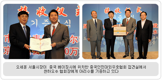 서울의 수돗물 아리수도 베이징 올림픽 가다 그런가 하면 서울의 수돗물 아리수도 베이징 올림픽이 열리는 경기장을 누빈다. 서울시는 아리수 페트병 10만 병을 베이징 시 올림픽 자원봉사자들과 재중 한국인 응원단에 지원한다. 오세훈 시장은 9일 천하오쑤 중국인민대외우호협회장과 만나 아리수 기증식을 갖고, 베이징올림픽의 성공적 개최에 대한 메시지와 함께 아리수 페트병 500ml 10만 병을 전달했다. 서울시는 세계인의 축제 올림픽에 서울의 수돗물 아리수를 공급함으로써 아리수의 안전성과 우수성을 세계에 알리고, 앞으로 서울시 수돗물 브랜드 아리수가 중국 등 해외로 진출할 수 있도록 국제적인 홍보 활동의 기회를 마련한 셈이다. 한편, 베이징 올림픽 기간 중 올림픽 경기장 등에서 아리수를 마시는 모습을 담은 사진을 대상으로 ‘아리수 디카공모전’도 개최한다. 공모기간은 8월 8일~15일까지로 디카사진을 촬영해 서울시 상수도사업본부 인터넷 홈페이지(http://arisu.seoul.go.kr)로 응모하면 된다. 수상작으로 선정된 작품에 대해서는 상장과 소정의 상금이 수여된다. 이번 2008 베이징 올림픽에는 세계 200여국에서 1만 500여명의 선수가 참가해 28개 종목의 302개 금메달을 향해 치열한 경쟁을 벌인다. 한국대표 참가 선수단은 13개 종목에 133명 규모로 참가하며 이 중 서울시 소속 참가 선수단은 8개 종목의 33명이다. |