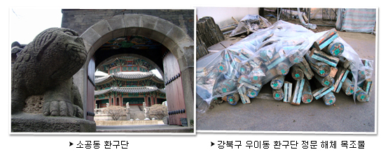 이번 환구단 정문의 귀환을 환영한다. 그러나 아직 문제는 남아있다. 환구단이 있는 자리가 어디인가? 중구 소공동 중심지다. 빌딩, 호텔로 둘러싸여 있다. 그 말은 땅값이 천문학적인 액수라는 것이다. 돈이 있다고 마음껏 확보할 수 있는 땅도 아니다. 쉽게 원 자리를 찾아 정문이 될 수 있을지 걱정이 앞선다. 광복은 되었지만, 제자리를 찾지 못하고 떠돌고 있는 목조건축물에게는 아직 광복은 먼 이야기 같다. 환구단 정문이 발견되었다는 강북구 옛 그린파크 호텔을 찾아 가보았다. 그곳에 도착했을 때 이미 주위는 어둑어둑해지고 있었다. 문을 볼 수 있다고 생각했는데 이미 해체 작업이 끝난 상태였다. 옮기려고 쌓아놓은 기와와 해체된 목조물만 보고 발길을 돌릴 수밖에 없었다. 올해 환구단 시민공원으로 귀환한다고 하니 그때 다시 한번 찾을 생각이다. 환구단 유적은 무척 중요하다. 대한제국 시기의 대표적인 유적이기도 하지만, 이제는 그 당시의 유적을 찾기가 쉽지 않다. 다시 한번 환구단 정문의 귀환을 가슴으로 환영한다.