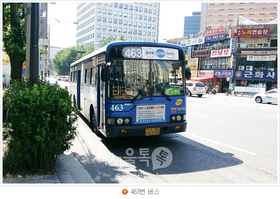 [서울톡톡] 시티투어버스보다 더 많은 관광지를 지나가는 시내버스가 있다면? 양재를 출발해, 도심을 거쳐 여의도로 가는 463번 버스의 별명은 1,050원짜리 서울시티투어버스다. 게다가 이 버스는 한강을 두 번 건너는 유일한 노선이다. 차고지를 염곡동에서 옮기면서 서울을 한 바퀴 도는 노선처럼 변했다.