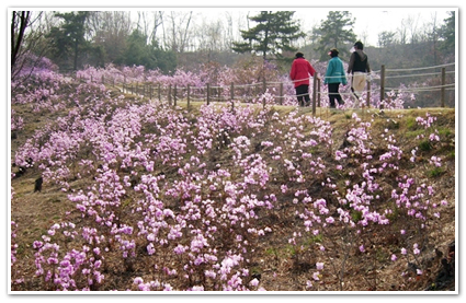 그런데 서울 도심에도 진달래 명소가 있다. 서울 강북구 미아동과 번동 사이에 넓게 펼쳐져 있는 ‘북서울 꿈의 숲’이 그 주인공이다. 지금 공원조성공사가 한창인 남쪽 자락이 아니라, 강북구 오현길을 사이에 두고 내년부터 공사가 시작될 북쪽지역의 번동쪽 산자락에는 지금 진달래꽃이 한창이다. 산자락을 뒤덮은 진달래꽃밭은 그야말로 장관이다. 한쪽 산자락을 연분홍색으로 온통 뒤덮은 진달래 꽃밭이 정말 황홀경을 연출하고 있기 때문이다. “우리 영감님도 어제 싫다는 걸 억지로 데리고 나왔는데 여기 와서 진달래꽃을 보고 너무 좋아 하더라고요” “내일은 우리 며느리랑 아들도 데리고 나와야겠어요, 관광버스 타고 먼데까지 가서 구경하는 사람들도 많은데, 이렇게 좋은 진달래 꽃밭이 가까운 곳에 있는 걸 못 보면 너무 아까울 것 같아요” 주변에 진달래꽃들이 흐드러진 산책로를 걸으며 할머니 세 분이 싱글벙글이다. 아름답게 변신 중인 ‘북서울 꿈의 숲’ 2차 개발예정지 산자락에 흐드러진 진달래꽃밭은 서울 도심에 있는 진달래꽃 명소로 손색없는 곳이다.