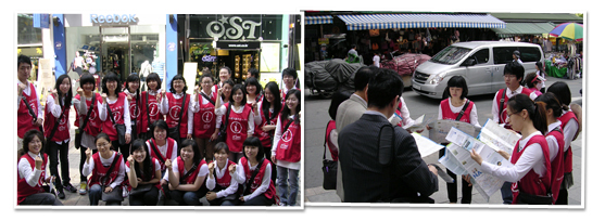 서울의 새로운 관광명물 '움직이는 관광안내소' 언젠가부터 명동 거리를 지나다보면 웃는 얼굴로 외국인들과 대화를 나누고 있는 빨간조끼를 입은 사람들을 쉽게 찾아볼 수 있다. 그들은 바로 최근 새롭게 서울의 관광명물로 자리잡고 있는 '움직이는 관광안내소'. 빨간 조끼를 입은 관광안내원들의 서비스가 '명동'에 이어 '남대문시장'에도 확대 운영된다. 지난 1월 30일부터 명동 일대를 중심으로 시범 운영해온 '움직이는 관광안내소'는 빨간 조끼를 입은 관광안내원들이 관광객이 많이 찾는 지역을 순회하면서 통역, 지리정보를 비롯한 관광코스 소개 등 다양한 관광 정보를 제공하는 신개념의 가이드 서비스다. '움직이는 관광안내소' 명동에 이어 남대문에서도 운영 명동 지역 시범 운영 결과, '움직이는 관광안내소'는 지난 3개월간 안내 건수가 1만 6천350건에 달하는 등 서울의 새로운 관광 명물로 자리 잡았다. 이러한 국내외 호평에 힘입어, 일본의 골든위크와 중국의 노동절 연휴 특수에 맞춰 5월 1일부터 운영 지역을 남대문시장까지 확대했다. 그동안 일본어와 중국어에 능통한 서울관광안내서비스 요원 3개조(2인 1조)가 활동해온 명동은 5~6개조로 확대됐고, 남대문시장에는 3~4개조를 새롭게 투입해 매일 8~10개조가 명동과 남대문 일대에서 서비스를 제공하고 있다.
