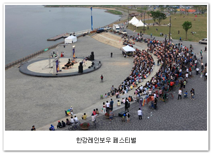 지난 4월 반포한강공원 개장과 함께 시작된 ‘한강레인보우페스피벌’은 매주 주말 시민들을 만나며 꾸준한 사랑을 받고 있다. 오는 20일에는 동물원의 가요콘서트와 난타 공연이 펼쳐져 뜨거운 무대를 선사한다. 26일 금요일에는 뮤지컬의 정수만을 모아놓은 갈라쇼와 미8군 군악대의 연주가 마련돼 있다. ‘한강레인보우페스티벌’은 5월부터 10월까지 금· 토· 일요일마다 펼쳐지는 새로운 개념의 축제로, 우산을 쓰고 달빛무지개분수 아래를 걸어가는 ‘분수비 체험’과 리본을 묶어 사랑을 약속하는 ‘무지개 언약(Rainbow Promise)’ 등 특색있는 체험행사도 함께 진행한다.