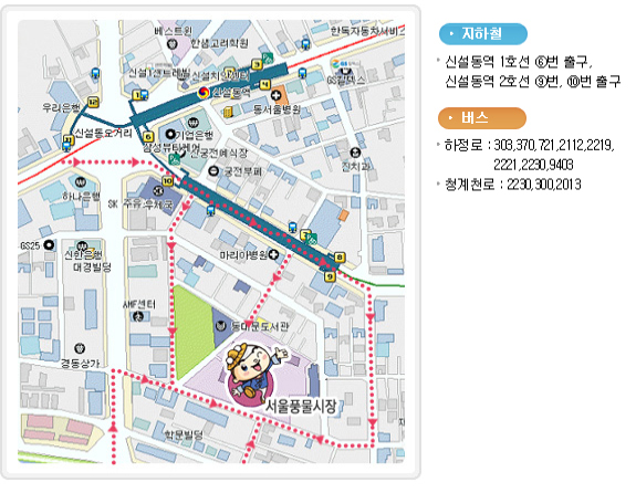 자치구 공연장에서도 다채로운 공연이 펼쳐진다. 중랑구에선 7월 「조이 콘서트」를, 양천구에선 「양천문화회관」 등에서 테마가 있는 가족공연이 펼쳐진다. 축제기간 동안 미술축제도 함께 열린다. 8월 14일(금)에는 강동구 일자산자연공원에서 미술체험 축제인 「태극기야! 무궁화야!」를, 9월 26일(토) 서울숲에서는 「야호~밀림의 서울숲」을 주제로 가족들이 참여할 수 있는 미술체험 행사가 열린다. 서울시민문화한마당은 건전한 여가생활을 도모하기 위하여 서울의 역사와 문화의 향기가 가득한 여러 명소뿐만 아니라, 문화 시설 소외 지역 등을 찾아가 무료로 진행되며 서울시민들과 함께 만들어가는 축제한마당으로 거듭나고 있다. 시민들이 도심 속 문화공간에서 즐길 수 있는 문화 한마당인 「2009 시민문화 한마당」의 월별 일정은 시민문화 한마당 홈페이지(www.seoulculture.or.kr) 및 다산콜센터 120에서 확인 할 수 있다. ★ 서울풍물시장 찾아오시는 길