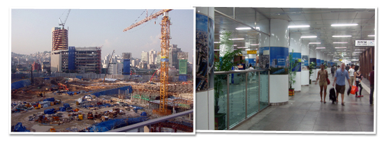 그리고 3층 관람을 마친 후 계단을 따라 4층으로 올라 옥상전망대에 다다랐다. 땡볕에 땀을 비오듯이 흘리며 부채질을 재촉하며 먼 길을 여기까지 올 만한 보람이 있었다. 그 아래로, 현재 공사 중인 디자인파크 전경이 펼쳐져 있었던 것이다. 서울의 심장부인 동대문에서 디자인 강국다운 힘찬 박동소리가 귓가에 커다랗게 울려옴을 느꼈다. 2년 후면 대한민국의 서울이 세계의 '디자인 수도'임을 만천하에 드러내며 그 역량을 뽐내줄 DDP! 어제와 오늘, 그리고 내일을 미리 음미해보고 싶은 시민들은 DDP 현장에 가보기 바란다. 인포센터에서 가까운 미래를 조망할 수 있는 기회를 잡을 수 있다. DDP 홍보관의 관람시간은 연중무휴, 관람료는 무료이며, 매일 오전 10시부터 저녁 9시까지 관람이 개방되어 있고, 가는 방법은 지하철 2호선이나 지하철 4호선을 이용하여 동대문운동장역 1번 출구로 올라가면 된다.
