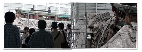 총 3단계 복구 작업 중 얻은 의외의 수확 숭례문의 복구 공사는 3단계로 이루어지고 있다. 첫 단계는 ‘화재 수습’으로, 훼손된 숭례문을 외부 환경의 영향으로부터 보호하기 위한 가설 덧집을 설치하고 재사용이 가능한 각종 부재들을 보존처리한 후 경복궁 내 보관소로 운반하는 등의 작업인데 작년 5월에 완료가 된 상태. 두 번째 단계는 ‘발굴조사, 고증 및 설계’로, 숭례문 내부 지역을 발굴조사하고 최대한 원형으로 복구하기 위한 고증과 설계 작업이다. 조선시대 기록 및 구한말 옛 사진 자료들과 숭례문 정밀도면 등을 이용하여 일제강점기 때 이루어진 훼손의 이전 모습으로 복원하겠다는 것이 목표다. 이 단계가 마무리되는 2010년부터는 본격적인 복구 공사가 시작되며 2012년 12월에 옛 모습으로 부활한 숭례문의 위용을 다시 만나볼 수 있다. 숭례문 복원 공사를 통해 전화위복 격으로 얻은 소득도 있다. 문화재청 숭례문복구단의 이정연 사무관은 “한국 전쟁 당시 폭격을 맞아 숭례문의 현판 곳곳이 조각나 훼손됐는데 이를 다시 복원한 것이 지금까지의 숭례문 현판”이었으며, “마침 조선시대 양녕대군의 사당인 지덕사에 소장된 숭례문 현판 탁본이 있어 비교를 해보니 잘못 되었음을 알고 이를 바로 잡아 숭례문 건립 당시 현판 모습 그대로 복구할 수 있었다”고 밝혔다. 뿐만 아니라 숭례문 내부 지역을 발굴조사한 결과, 성벽이 헐린 자리에 세워진 것으로 추정되는 일제강점기 때 근대건물의 터가 발견된 점도 또 다른 소득이다. 하부 벽체, 바닥시설, 지하실, 정화조, 그리고 우물까지 당시 건물의 시설을 추측해볼 수 있기 때문이다. 그 외에도 조선 후기의 도로면이 발굴되고, 다량의 소뼈와 각종 그릇 등 숭례문 앞에 자리했던 민가의 흔적들이 발견되어 많은 이목을 끌고 있다. 그럼에도 불구하고 국보 1호 숭례문이 화재로 일부 소실된 것은 2천년여의 역사를 안고 있는 한 민족에게 있어서는 수치스러운 일이다. 사적인 분노를 어리석은 방법으로 표출한 방화범에게 직접적인 원인이 있지만, 2006년 숭례문 개방이 화재의 근본적인 원인이 아니냐는 일각의 비판도 있다. 이들은 소방 시설이 잘 갖추어지지 않은 상태에서 이루어진 성급한 공개였으며, 오랫동안 보존해나가야 할 소중한 유산인 만큼 일반인들에게 직접 공개를 하는 문제는 더욱더 신중해야 한다고 지적한다.