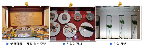 아늑하고 조용한 지하층의 전시관에는 한약재 냄새가 물씬 풍기며, 강의실에선 이른 아침시간인데도 성인을 대상으로 한의학 강의가 진행되고 있었다. 학예연구사 문선희 씨는 "어린이와 청소년을 위한 프로그램도 인기리에 진행 중이며, 성인 연수 프로그램도 참여도가 매우 높다"고 말한다. 어린이를 위한 특별 체험공간도 마련되어 있다. 어린이들이 쉽고 친숙하게 한약재를 이해할 수 있도록 동식물이 그려진 배경 그림판의 패널도 열어 보면서 어느 부분을 약재로 사용하는지를 학습할 수 있다. 또한 둥근 판의 일부에는 양각판을 새겨 어린이들이 직접 망태기가 그려진 종이를 대고 색연필로 문지르면 약재가 나타나는 탁본체험을 할 수도 있다. 한방비누와 향기주머니 만들기 체험도 있다. ▶ 서울약령시 한의약박물관 관람시간 : 하절기, 3월-10월 (10:00-18:00) 동절기, 11월-2월 (10:00-17:00) 매주 월요일과 1월 1일, 설날, 추석은 휴관 관 람 료 : 무료 문 의 : 02) 3293-4900, http://museum.ddm.go.kr 교 통 편 : 지하철 1호선 제기동역 3번 출구에서 걸어서 3분 지하철 2호선 용두역 2번 출구에서 걸어서 7분 버스(간선) 105, 147, 201, 260, 261, 270, 271, 420, 720번 버스(지선) 0013, 1147, 2012-01, 2112, 2219, 2221, 2233번 버스(광역) 9205번 |