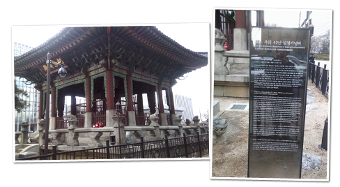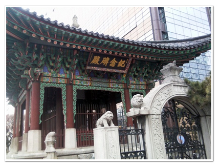 서울은 한국의 근본이 되는 수도이다. 그렇다면 서울의 근본은 어디가 될까. 종로 1가에서 세종로 부근이 그 중심이 아닐까. 세종로는 조선 시대의 중심지인 육조거리가 형성되었던 곳이다. 경현록의 말을 빌리면, '서울에서 하는 일은 모든 지역에서 본받을 것이며 임금이 좋아하는 바는 모든 백성이 하고 싶어할 것입니다.'라고 적혀 있다. 그렇다. 한국을 알려면 서울을 알아야 하고, 서울을 알려면 종로통을 알아야 한다. 누군가의 말처럼 역사는 전례가 가르치는 미래의 철학이다. 우리는 역사를 읽는 동안 새로운 역사를 만들어 나가는 것이다. 조선 500년의 한양 도읍지의 가장 중심지 였던 육조거리(현재의 세종로)에 고종 칭경기념비전이 세워져 있다. 이 고종 즉위 칭경기념비전은 일제 강점기 때 훼손된 것을 1979년에 완전히 뜯어내 복원한 것이다. 고종 즉위 40년 칭경기념비(高宗卽位40年稱慶紀念碑)는 대한제국의 고종 즉위 40년을 기념하여 1902년 세운 기념비. 고종은 12살(1863년)에 보위에 올라, 나이 51세가 되는 즉위 40년을 기해 세운 기념비다. 기념비의 비문에는, '대한제국 대황제 보령 망육순 어극 사십년 칭경기념송'이라는 글이 새겨져 있다. 그리고 고종이 황제를 칭한 것과, 광무라는 연호를 사용한 것, 고종 즉위 40년이 된 사실 등이 기록되어 있다. 그리고 이 칭경 기념전은 1969년 7월 28일 사적 171호로 지정되었다. 비의 글은 당시 황태자인 순종이 썼다. 비문은 의정부 의정 윤용선이 짓고, 글씨는 육군 부장 민병석이 썼다. 이 비를 둘러 싸고 있는 비전은 규모가 작은 편이나 경복궁 근정전의 모습을 닮았다. 특히 돌난간과 돌기둥에는 12지신의 동물 외 현무, 주작, 청룡, 백호가 마주 보고 있는데 이는 조선 시대의 건축물에서는 흔하지 않은 특이한 것이다.