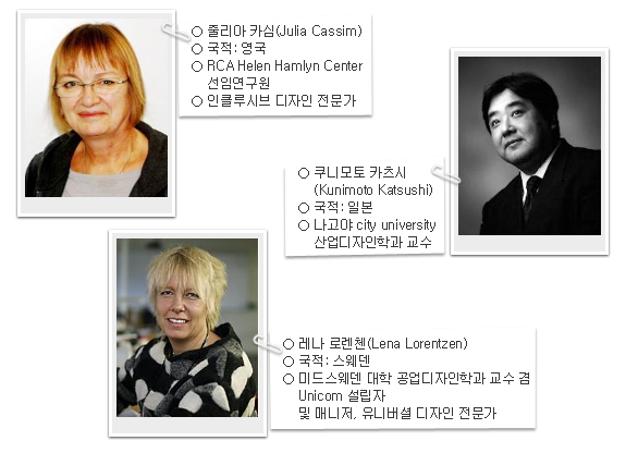 여성, 노인, 어린이, 장애인, 외국인 5팀으로 워크숍 진행 워크숍 프로그램은 현장 체험, 분야별 전문가의 강연 및 온라인 세미나, 팀별 토의 등의 일정으로 진행된다. 특히 영국왕립예술대학교(Royal College of Art)의 줄리아 카심(Julia Cassim) 교수와 미드스웨덴대학(Mid Sweden University)의 레나 로렌첸(Lena Lorentzen) 교수 및 일본 나고야시립대학교의 쿠니모토 카츠시(Kunimoto Katsushi) 교수 등 국제적 디자인 전문가들이 지도교수로 동참해 참가자들에게 좋은 기회가 될 것으로 보인다. 영국 RCA의 줄리아 카심 교수는 장애를 가진 예술가들을 위한 전시회를 여는 등 장애인을 위한 여러가지 프로젝트를 진행하였고, 스웨덴의 레나 로렌첸 교수는 ‘모두를 위한 디자인(Design for all)’을 주제로 여성을 위한 디자인 연구에서 많은 성과를 거두었다. 이번 워크숍의 결과물은 이미지, 동영상, 모형 등 다양한 형태로 구현되어 9월 17일부터 10월 7일까지 서울 잠실종합운동장에서 개최되는 ‘서울디자인한마당2010’ 행사에 전시될 예정이다. 현실성 있는 결과물은 관련 서울시 각 부처와 연계하여 시정에 반영될 수 있도록 추진할 계획이다. 워크숍 일정