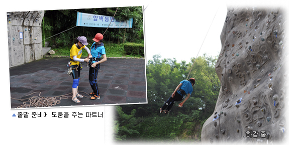 암벽 등반으로 얻을 수 있는 것은 많다. 전신 근육을 골고루 쓰는 온몸 운동이므로 심신의 건강은 물론 호연지기, 인내심, 담력, 의지력을 함께 키우게 된다. 최선을 다하는 것을 배우고 스포츠 클라이밍의 도전 정신을 갖게 된다. 응봉 인공 암벽등반 관리자 정원조 씨는 이용인구의 남녀비율은 6:4 정도라며, 초보자를 위한 기초 코스도 있으니 두려워하지 말고 도전해보라고 말한다. 일본인과 미국인들도 즐겨 찾는다고 한다. 통상 3개월 정도 기본교육을 받으면 다음 등반 코스로 넘어갈 수 있다. 단, 자신의 능력에 비해 무리하는 것은 금물이다. 익숙해지고 진정한 취미로 느끼기까지는 오랜 시간이 걸리는 스포츠이기 때문이다. 기초 등반 장비는 촉크, 벨트, 암벽화, 자일 등이며, 기초 교육과정을 마친 후 바위에 붙는 트레이닝을 실시한다고 한다. 옥수동과 신내동에서 온 50대 주부 신씨와 이씨는 자일 파트너다. 두 사람 모두 사진을 통해서 암벽 등반에 입문하게 되었다고 한다. 근육 운동이다보니 중년 주부들에게 흔한 50견이 없어질 정도로 유익한 운동이라고 자랑한다. 훈련 시간은 1회 5분씩, 하루 10회, 4시간 정도로 한다. 직선과 오버형을 나누어 15분에서 30분 정도로 하고 휴식을 취한다. 특히 하강 코스를 조심해야 한다고 귀뜸한다. 기자도 오래 전 한국산악회에서 암벽등반 학교 연수교육을 필했다. 산의 험난함을 극복해가며 산과 대화하고 이성적 세계를 찾는 경험을 통해서 건강까지 유지하게 되므로 금세 매료된다. 바람 한 점 없는 무더운 날씨에 산을 오르내리며 열심히 취재를 마친다. 응봉 암벽등반 공원은 지하철 3호선 옥수역에서 환승하여 중앙선을 타고 응봉역에 하차한 뒤 8번 마을버스를 이용해 응봉현대아파트 정류장에 내려서 산이 보이는 곳으로 걸으면 6분 거리에 위치하고 있다. | |||