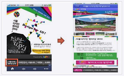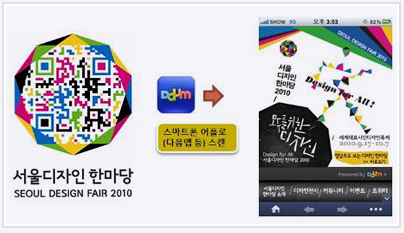 한번 스캔된 QR 코드 정보는 개인의 스마트폰에 저장되어 언제든 열람할 수 있으며, 트위터 등의 SNS(Social Network Service)를 통해 전송하면 주변의 친구나 동료와 정보를 공유하는 것도 가능하다. 볼 거리, 즐길 거리 풍성한 '서울디자인한마당 2010', QR 코드로 더욱 편리하게 관람해보자.