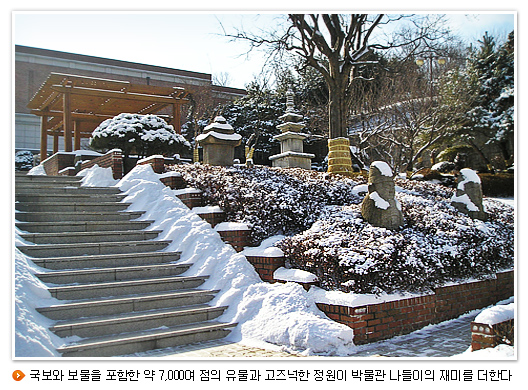이번 기획전은 봄까지 계속된다. 고요한 그릇받침 기획전을 찾아 고대 토기 속에 간직된 우리 문화의 아름다움과 미처 알지 못했던 매력을 발견해보는 건 어떨까? 1층 고고실 뿐 아니라 2층 도자실의 금속 공예실, 서화전적실의서 백자주자(국보 281호), 금동탄생불(보물 808호), 추사 김정희의 간찰 등 약 7,000여 점의 유물을 관람하는 재미도 쏠쏠하다. 관람 후 고풍스럽고 단아한 박물관 정원을 거닐며 여유로운 산책을 즐기는 기쁨도 빼놓을 수 없다.