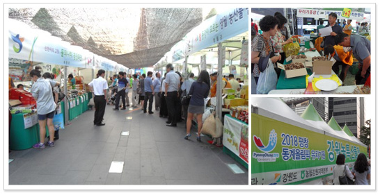 지난 6월 16일부터 19일까지 4일간 청계광장에서는 강원 농특산물전이 열렸다. 특히 2018년 동계올림픽 개최지 최종 선정을 20여 일 앞두고, 평창 유치기원을 겸해 열린 장터라 관심이 더욱 높았다. 이번 농특산물전은 강원-서울 간 직거래장터로 싼값에 청정 농특산물을 구입할 수 있었기 때문에 서울 시민들의 반응이 뜨거웠다.