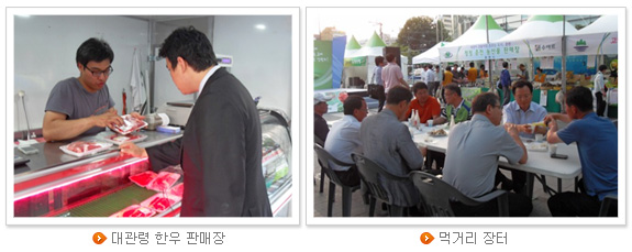 이날 대관령 한우가 단연 인기였다. 강원 평창 축협 김종렬(38) 씨는 “600그램이 시중에서는 17,400원 정도 하는 데, 이곳에서는 10,000원에 판다. 동계 올림픽 평창 유치기원과 서울시민을 위한 특별 서비스다”라고 말하며, 찾아주는 시민들에게 깍듯이 인사를 했다.