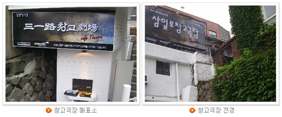 우리나라 최초의 민간 소극장을 찾아가는 길은 한적하고 소박했다. 명동에 있다고는 하지만 쇼핑의 메카 명동의 시끌벅적한 분위기에서는 좀 벗어난 곳, 남산1호 터널 올라가는 길가인 삼일로 변 작은 언덕 골목길에서 그 이정표를 찾을 수 있었다. 4호선 명동역 10번 출구로 나와 세종호텔을 지나자마자 좌측 길로 접어들어 의심 없이 100여 미터를 가다보면 작은 언덕이 나오고 그 언덕 위 왼편으로 창고극장이 있었다. 그동안 대대적인 보수공사를 마치고 재개관 하루 전인 삼일로 창고극장은 아직 정돈이 좀 덜 되어 있는 상태였다.