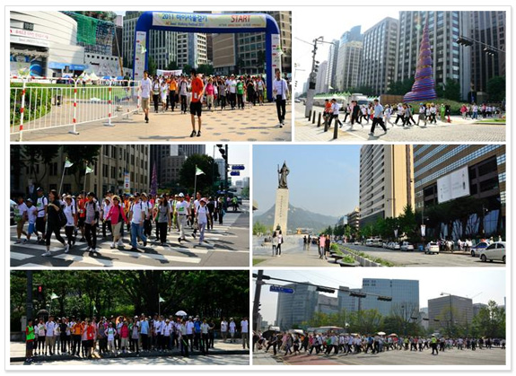 지난 17일 2011하이서울걷기대회를 다녀왔다. 17일 코스는 문화탐방 걷기(13km), 서울성곽길 걷기(13Km) 두 가지가 있었다. 나는 그 중 9월 17일 서울광장을 출발하여 경복궁, 창덕궁, 창경궁, 종묘 등 서울의 과거문화 유산이 그대로 살아있는 고궁을 둘러보는 문화탐방(13Km) 걷기대회에 참가했다.