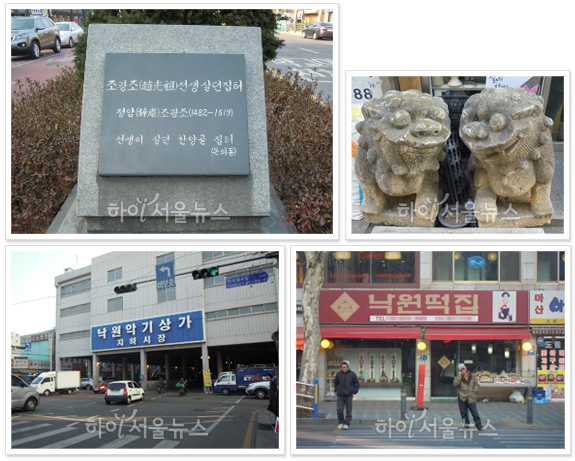 [서울시 하이서울뉴스] 조선 중종시대의 출중한 학자이며 개혁정치가였던 정암 조광조가 살던 집터 표지석이 인사동 입구 돈의동에 있다. 낙원 악기상가 앞, 거리 가운데 화단에 그가 살던 집터 표지석이 외롭게 서있다. 거리 좌우에는 ‘낙원떡집‘과 ’종로떡집‘이 마주 서있는데 그 중간 도로 가운데 지점이다. 한 시대를 풍미하며 개혁정치를 꿈꾸었던 그의 꿈도 그곳에 아직 남아 있을지 모를 일이다. |