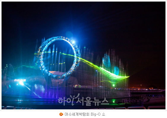 여수세계박람회의 상징물 중 하나로 여겨지는 Big-O는 이름에서 느껴지듯 거대한 O형 구조물로 박람회장 앞바다의 방파제와 육지를 연결해 만든 곳에 위치하고 있다. 해상쇼가 펼쳐질 때는 조명 역할을 하고 자유자재로 물속에 가라앉았다 떠오르는 신비로움까지 연출한다고 한다. 탁 트인 노천에서 화려한 분수쇼를 감상하는 즐거움은 육체적인 시원함 뿐 아니라 가슴 속까지 스트레스가 확 풀리는 상쾌함을 선사해주리라 기대한다. 분수쇼 공연은 주간에는 박람회 프로그램에 맞춰 1시간마다 펼쳐질 예정이다.